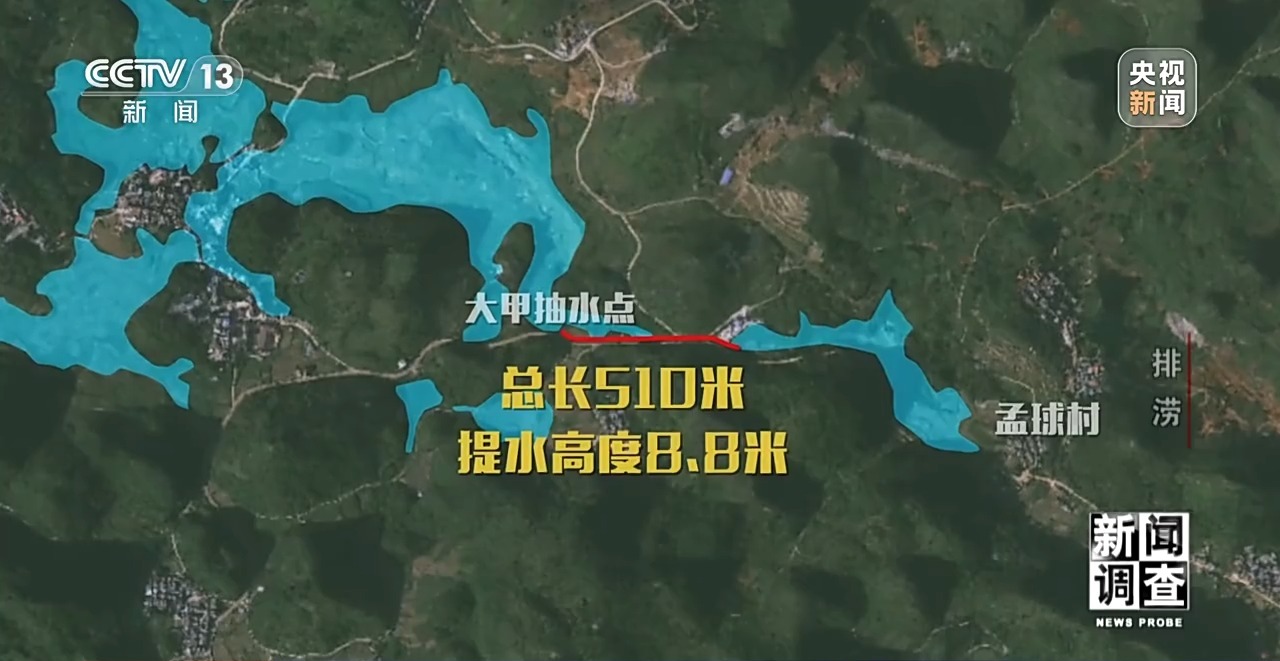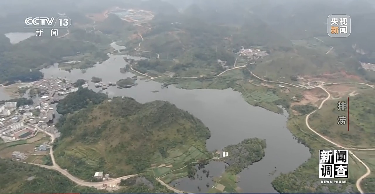 甲赛村的布镜屯,也是新甲乡此次受灾最严重的点位之一。记者跟随村干部来到这里,大甲街的抽水排涝是否会对这里产生影响,一直备受关注。据村干部介绍,甲赛村布镜屯的积水深度一度超过4米,但由于不具备抽排水条件,在靖西市内涝灾害“一点一策”方案中,对于这一点位,给出的对策是“等待自然消退”。布镜屯的最低洼处有三个溶洞,如今都在水下,它们既是冒水洞,也是消水洞,最近一周,消水速度明显加快,水位从每天下降15厘米,到现在每天下降近50厘米。