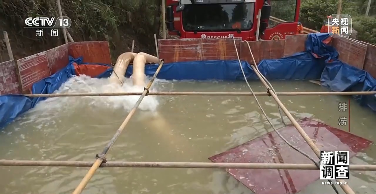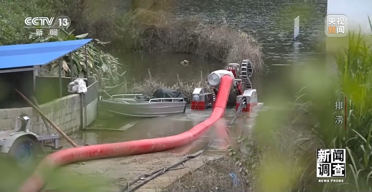 在此之后,每天上百人参与,46个排水泵、总长19000多米的排水管、24小时不间断地进行抽排水工作,大家都希望积水尽快消退,受灾村民早日重返家中!